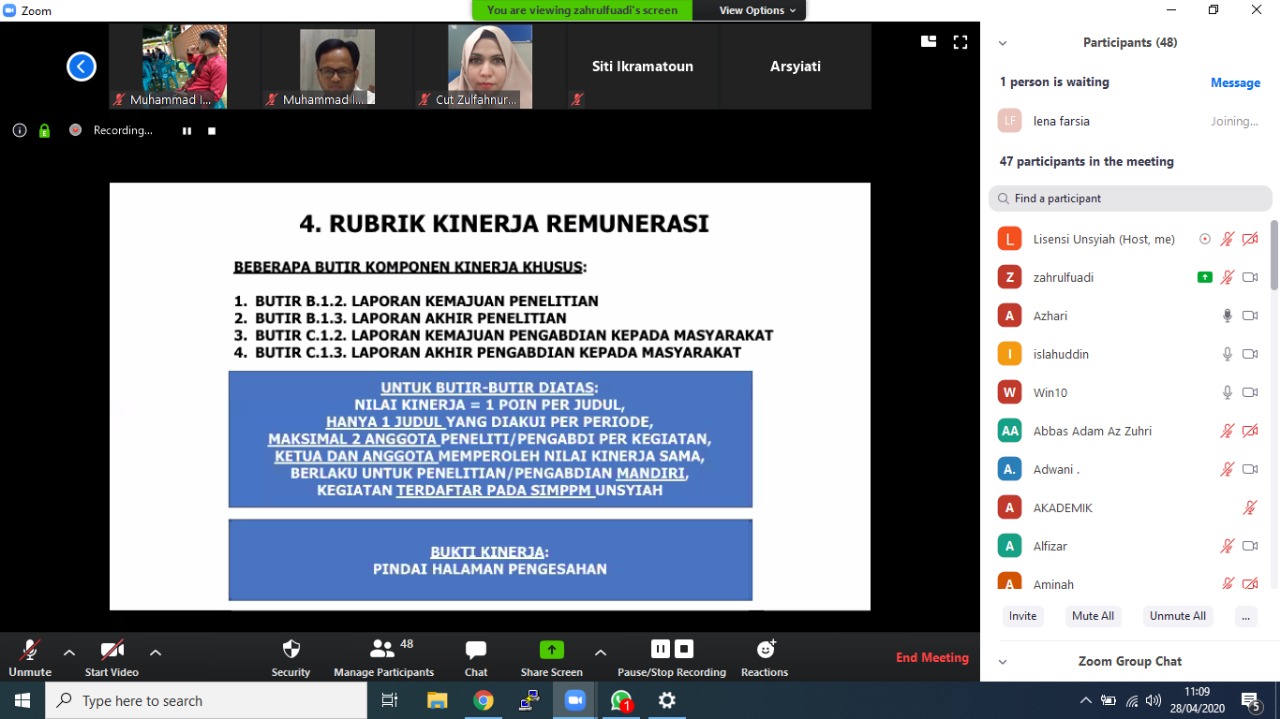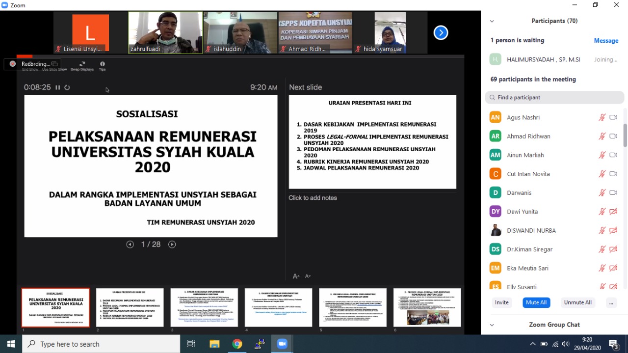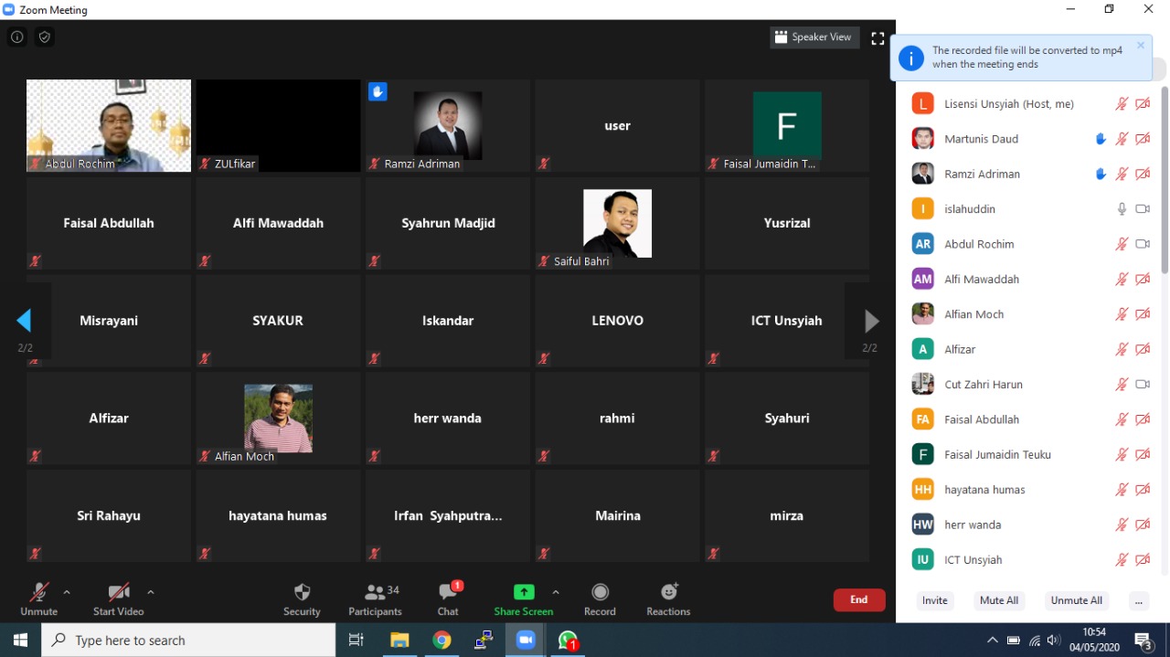 Sosialisasi SIREMUN dimulai pada tanggal 27 April s.d 4 Mei 2020 yang dilakukan secara online dengan aplikasi Zoom. Post navigation Kegiatan MoU Universitas Syiah Kuala dan Universitas Andalas
